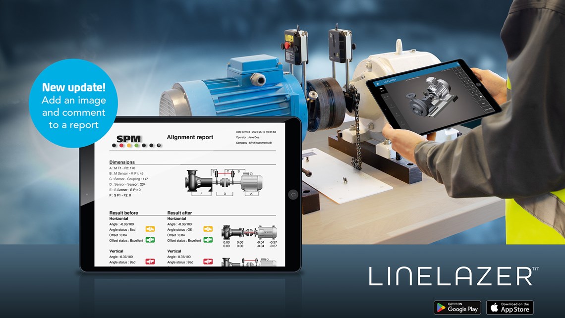 SPM Instrument veröffentlicht ein Update der LineLazer-App zur präzisen Wellenausrichtung. Die LineLazer-App steht im App Store und bei Google Play zum Download zur Verfügung und kommuniziert mit LineLazer-Ausrichtungssensoren, um eine präzise Wellenausrichtung in typischen Anwendungen wie Motor-Pumpen-Baugruppen zu erreichen.